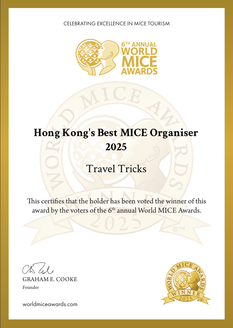 Travel Tricks™ has been crowned “Hong Kong’s Best MICE Organiser 2025” at the World MICE Awards, placing the company among the most elite global event and destination management organizations. The award recognizes Travel Tricks’ mastery in large-scale corporate logistics, cross-border incentive travel, and world-class MICE execution across Asia and the Middle East.